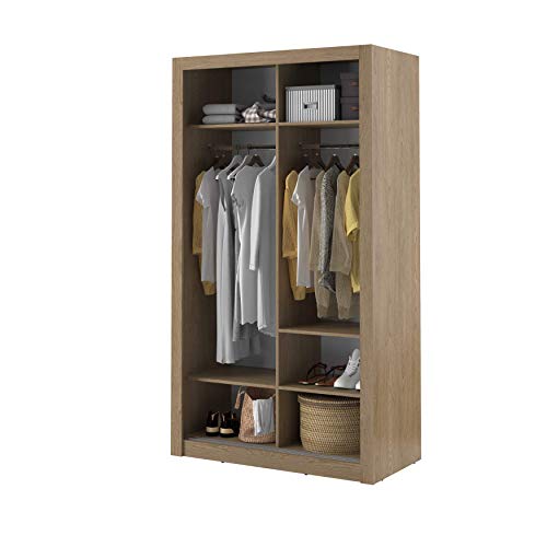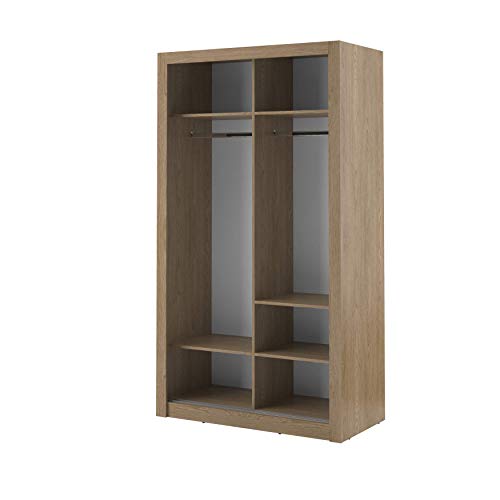 Arthauss Modern Bedroom Mirrored Sliding Door Wardrobe Arti 6 in Oak Shetland 120cm – Flat Pack Wardrobe with Sliding Doors, Perfect for Space-Saving, Sliding Door Wardrobe with Customisable Interior