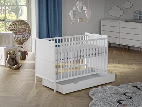 B4Beds White Wooden Baby Cot Bed with Optional Mattress Included, Safety Wooden Barrier (White with Mattress)