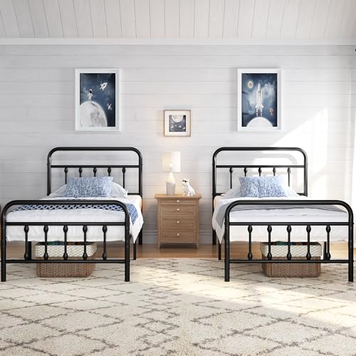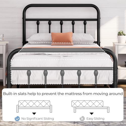 - High Headboard Design: Compared with other metal beds, this vintage bed frame has a higher headboard for better protecting your head and providing you a comfortable sitting place. By propping soft pillows behind your back, you can read books or watch TV in comfort.