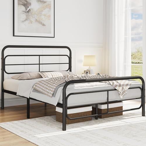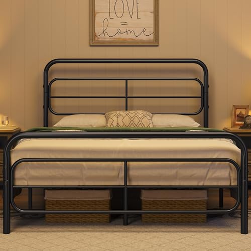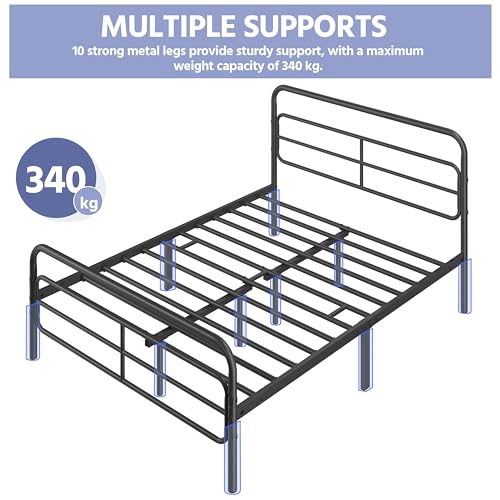 - STURDY BED CONSTRUCTION: Our double size platform bed is built with a strong metal construction that includes side rails, extra center rail, 10 sturdy support legs and 12 built-in metal slats. It can hold up to 340kg without annoying squeaky noises, eliminating the need for a bulky box spring.